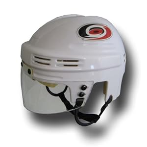 Product Description : Sportstar Athletic's authentic scale model mini helmets with eye shield, foam padding, ear loops, and authentic NHL team decals. Mini Helmet Size: 6" long x 5" wide.