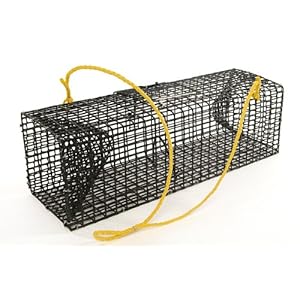 Product Description : Made with the smaller 1/2x1" 16GA black vinyl coated wire. Two black mesh tunnels, attached 2-way bridle rope and bait jar holder included. 24"Lx7"Wx7"H.