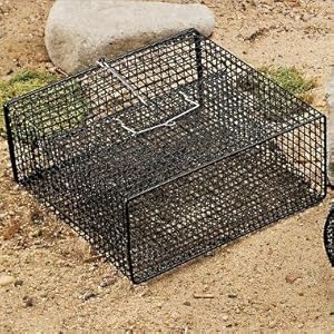 Product Description : The Frabill Flat Bottom Crawfish Trap, with its low profile, square shape, covers a large trapping area! Hinged back door makes baiting and retrieval easier than ever. Adjustable entry size. Heavy-duty vinyl dipped steel mesh construction for a long life. Black. 12 x 12 x 5". Trap yours today!
