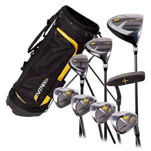 Product Description : Nitrix CS 460cc Driver - This titanium-enhanced driver is designed with a high MOI and comes with a controlled launch graphite shaft to help promote an optimal transfer of energy on contact. The result is maximum Distance and Forgiveness. Nitrix CS 3 Wood - Like the driver, low profile 3 wood is designed for optimal performance and includes a graphite shaft. Its deep center of gravity promotes a Higher Launch Angle allowing for pure contact both off the tee and on the fairway. Nitrix CS 4/5 Hybrid - This highly versatile club provides a single club solution for long iron distances on the fairway or in the rough. Made with 431 stainless steel and equipped with a graphite shaft and perimeter weighting. Nitrix 6-9/PW Irons - A perfect blend of strength, performance and style the Nitrix CS cavity-back irons have a wide sole for increased forgiveness and playability. The notched, cavity cut allows for easy set up and clean contact resulting in an ideal ball placement and distance. Nitrix CS Putter - Essential to any golf bag is a classic Anser Style Putter. At 34" in length, this cavity-back putter ensures great balance and feel for every putt. Men's set is built at men's standard length and flex. Ladies set is built at ladies standard length and flex.