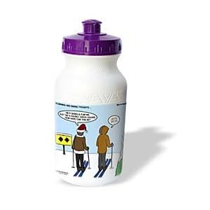 Product Description : Novice Skiers Fatal Mistake Taking a Double Black Diamond Water Bottle is 21oz capacity - 8 inch tall, 2.5 inch diameter. Sports bottle have become a welcome addition to today's fitness craze. Use sports water bottle while exercising, gardening or watching sports events. Water bottle comes with image on both sides and it is top shelf dishwasher safe.