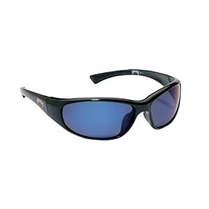 Product Description : The Strike King Bluewater Sunglasses feature a shiny black frame, close fit, rubber nose piece, rubber insert on inside end of temples and gray with blue mirror lens.
